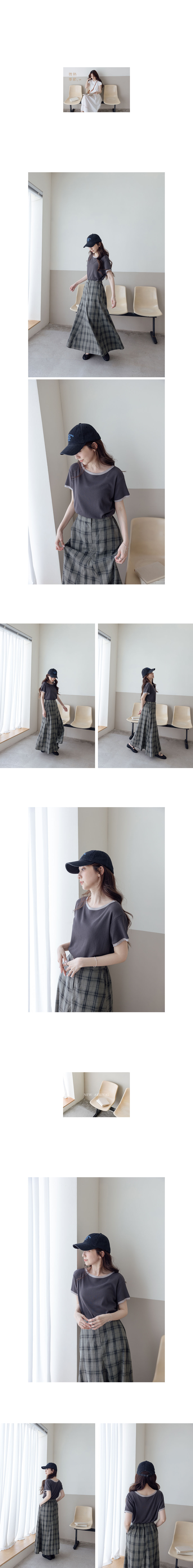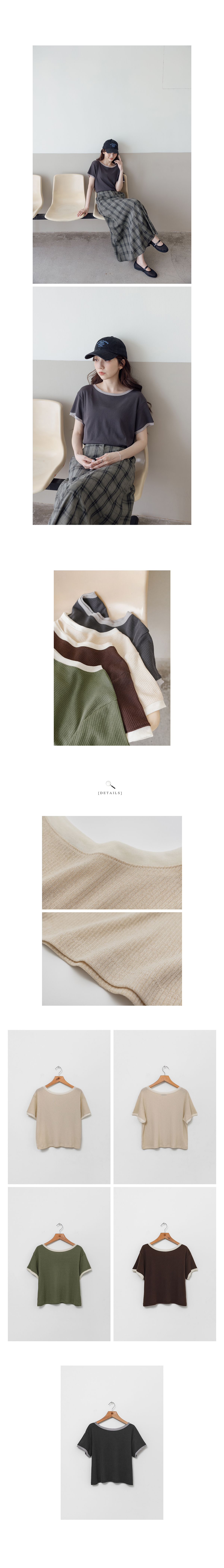 正韓 夾心餅乾滾邊寬圓領薄棉衫