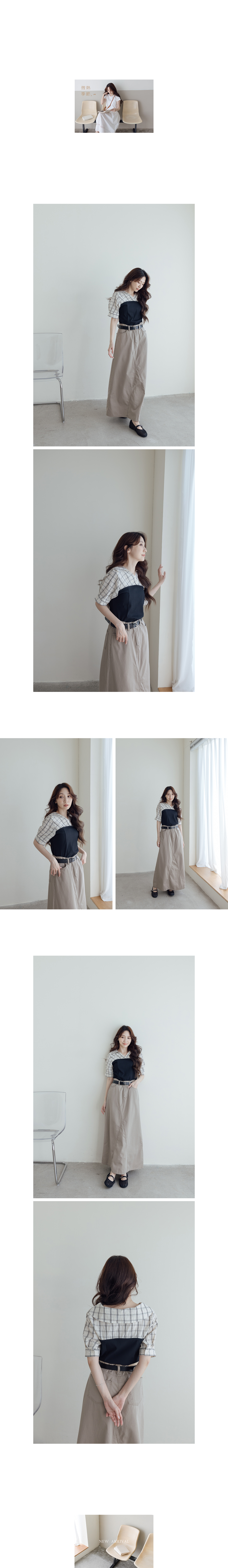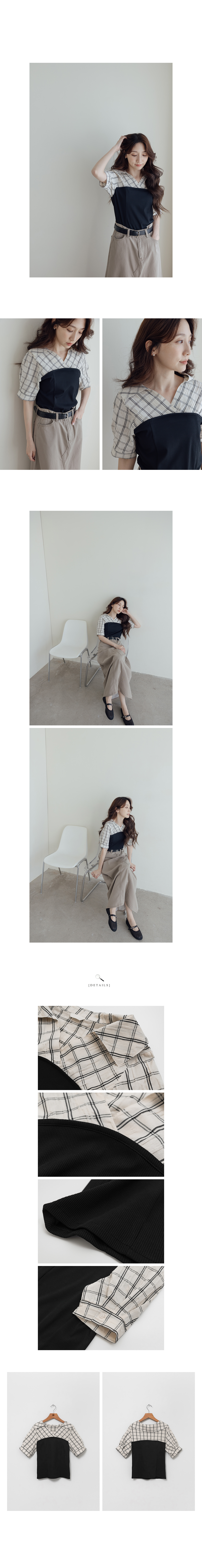 1:15:15 RN5011 假兩件拼接格紋襯衫(圈)