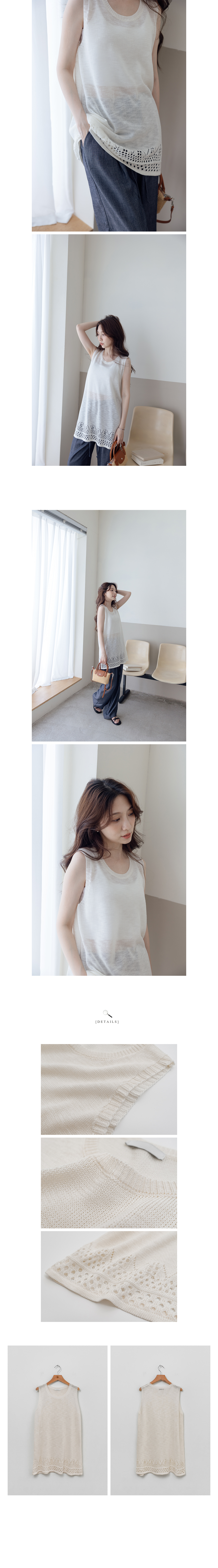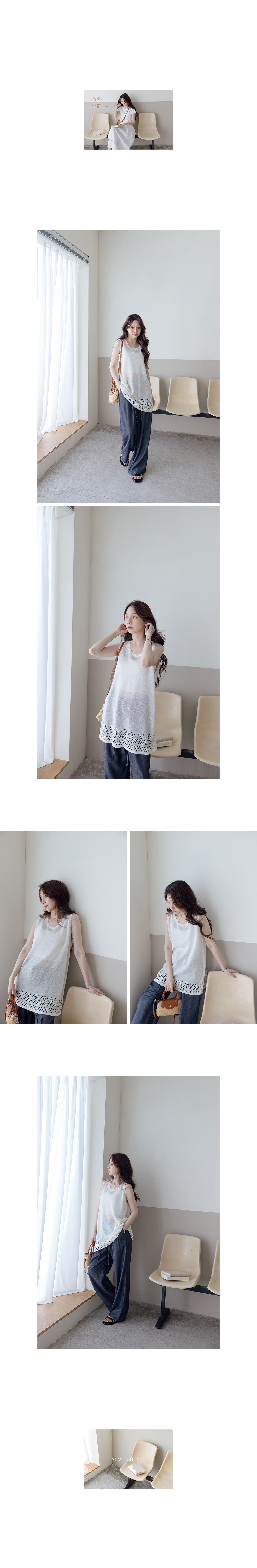 正韓 縷空洞洞下襬混麻針織背心