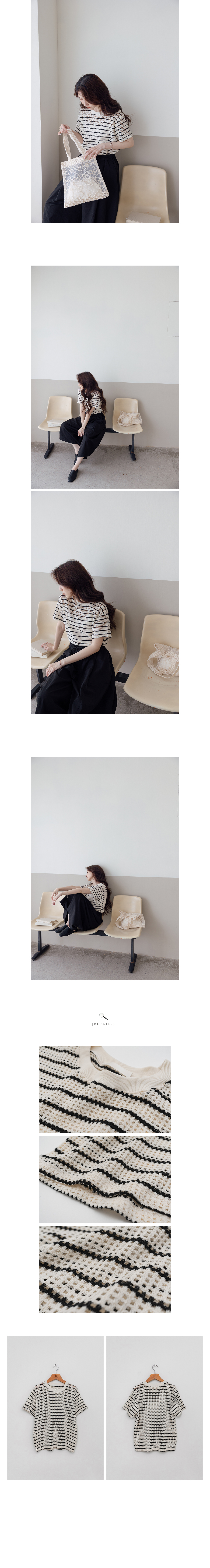 正韓 洞洞方格橫條棉織紋衫