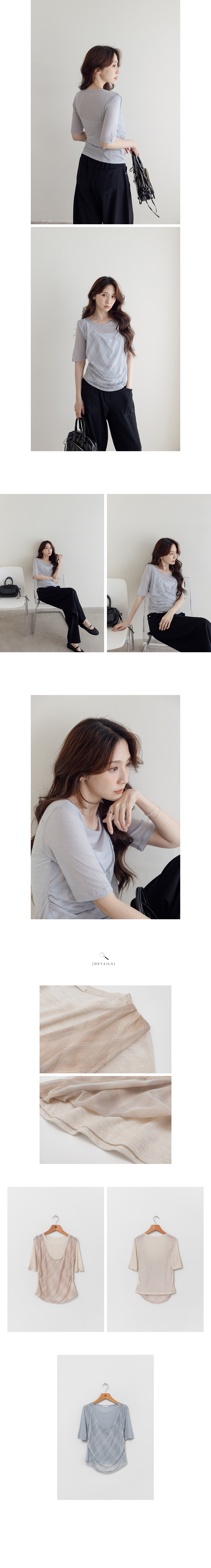 1:45:53 RN5040 假兩件透光格紋垂領棉T(156代表)