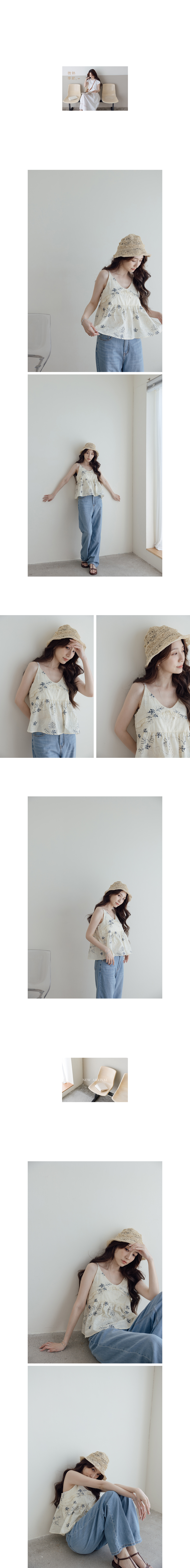 17:38 RN5043 刺繡線條花印紋細肩帶背心(曉彤)