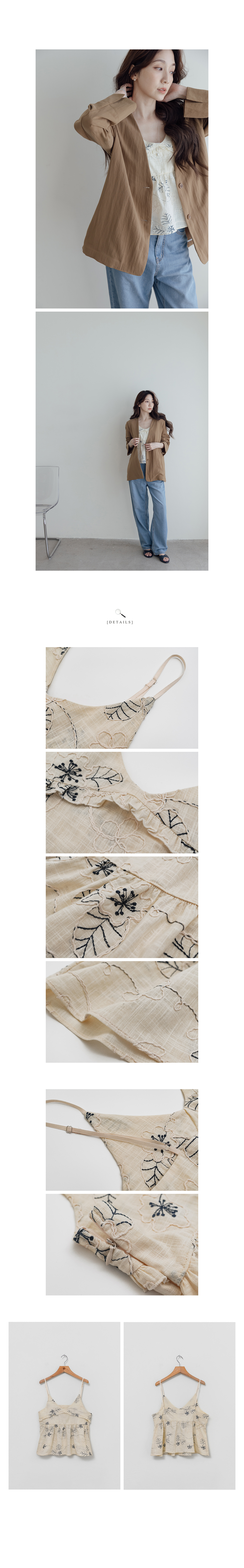 正韓 刺繡線條花印紋細肩帶背心