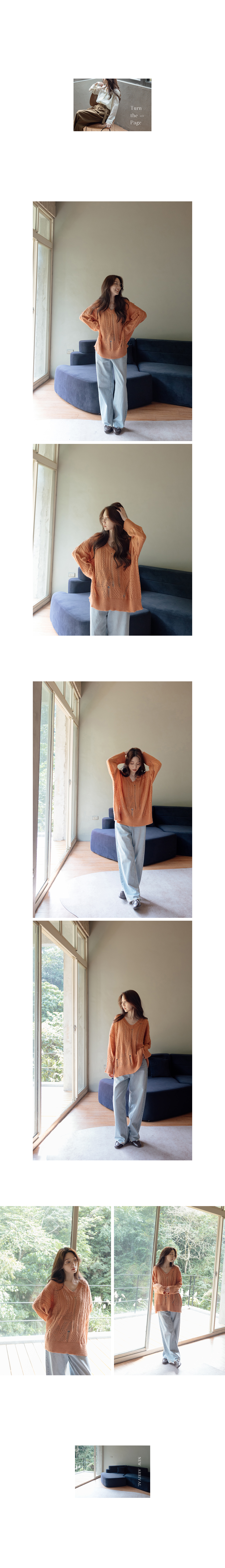 正韓 (限量)橘色設計感破破縷空抽鬚毛衣