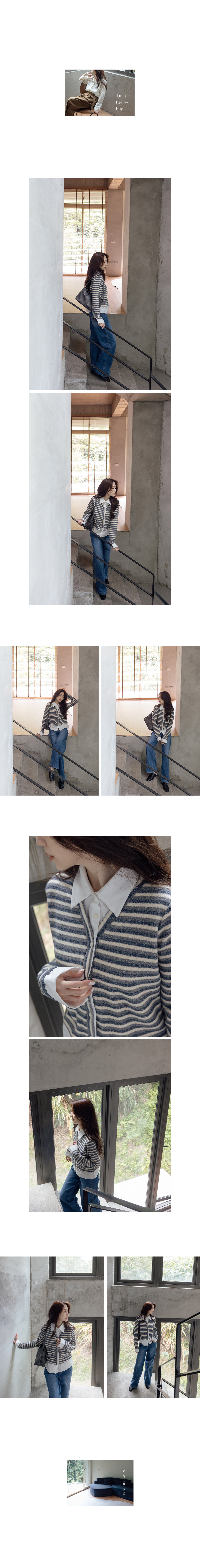 5:37 WM12049 配色直條紋假兩件毛料襯衫(梨寶)