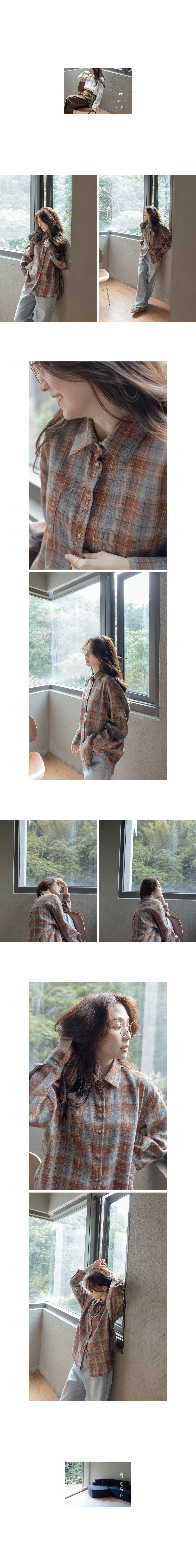 正韓 獨家設計-藍橘格紋微棉襯衫