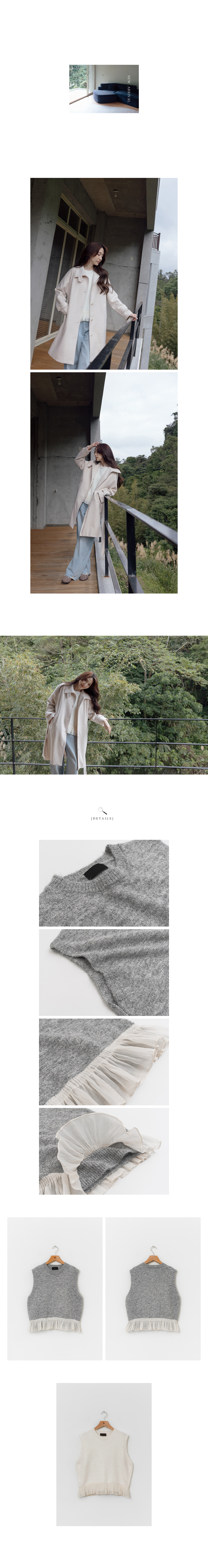 正韓 抓褶滾紗邊下擺毛衣背心