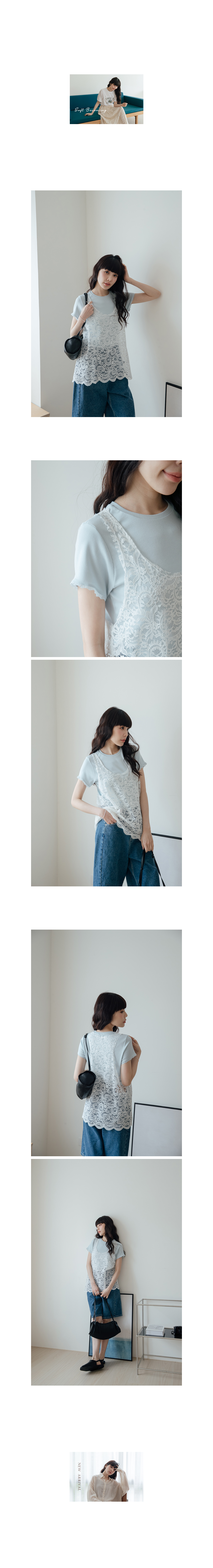 1:35:34 RN4010 蕾絲滾邊袖彈性羅紋棉T(圈)