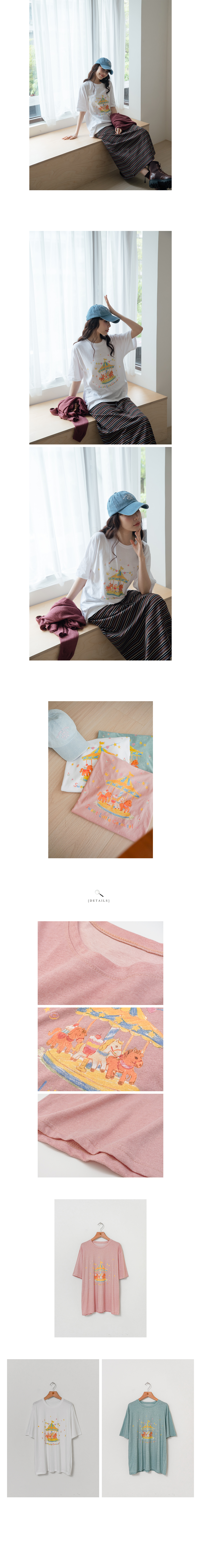 正韓 繽紛色彩旋轉木馬長板棉T