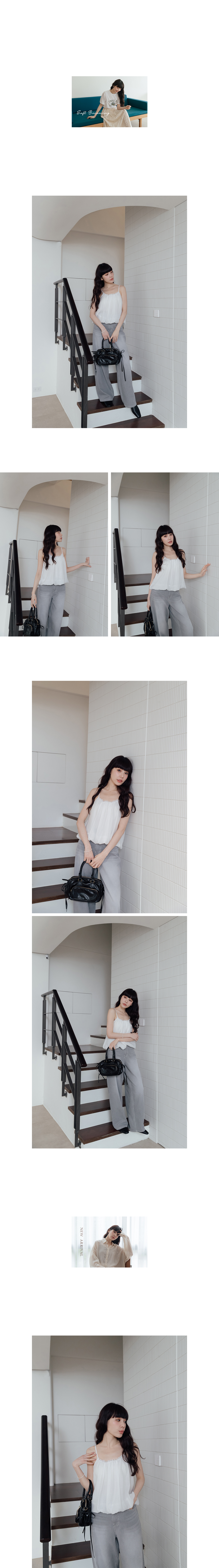 正韓 細肩帶U領蕾絲紗質澎澎背心