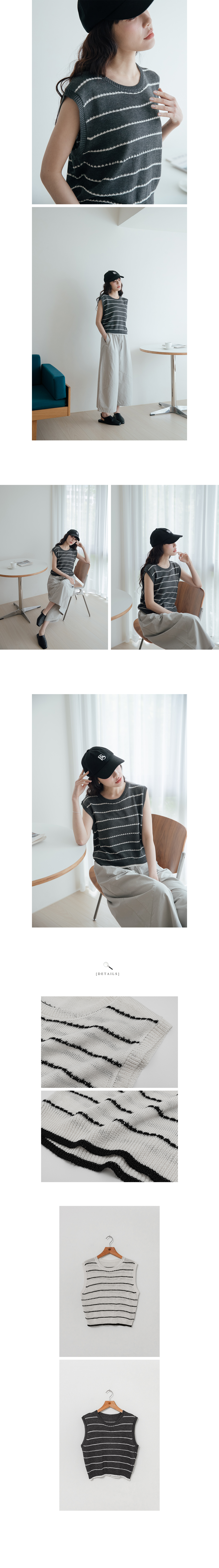 正韓 編織橫紋混麻料針織背心