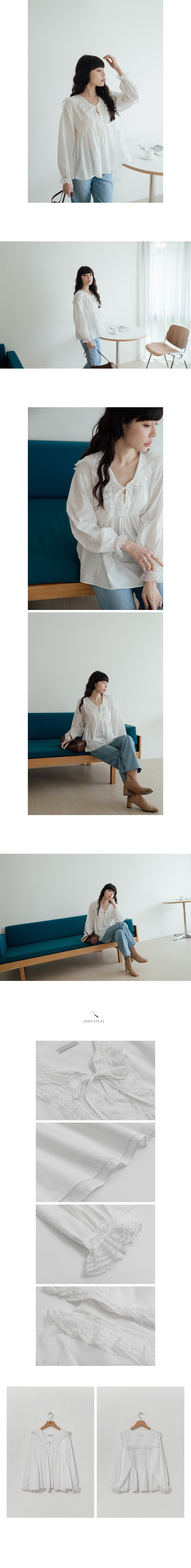 正韓 小浪漫V領滾邊蕾絲娃娃衫