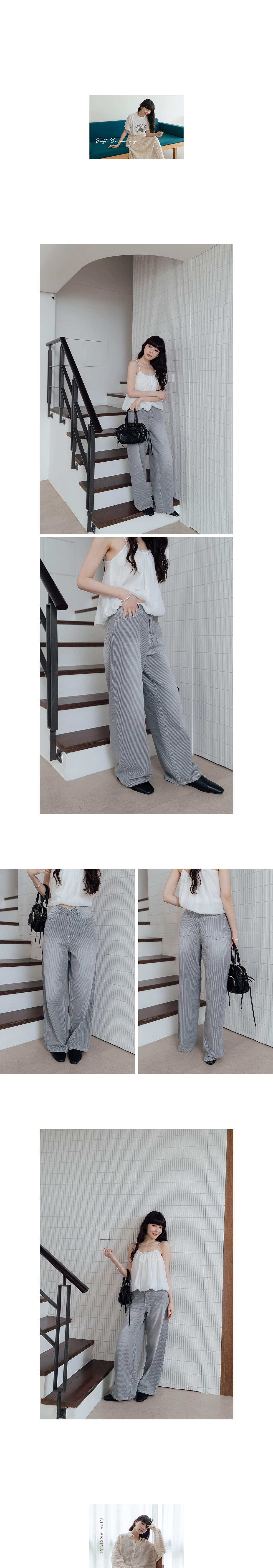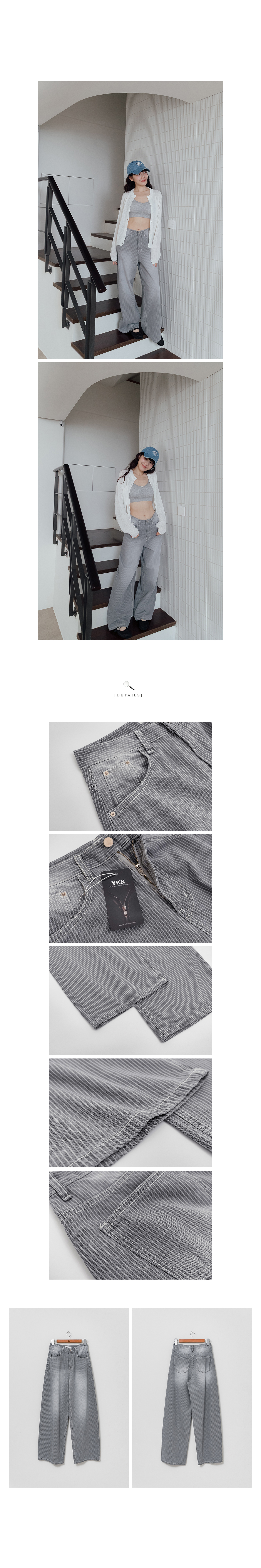 正韓 水洗灰直條紋棉丹寧褲