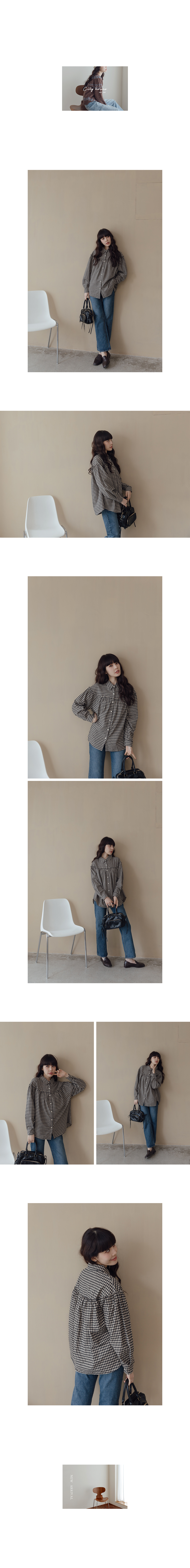 1:25:35 WM10002 抓皺弧線小斗篷格紋襯衫(棉花)