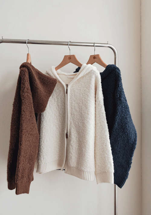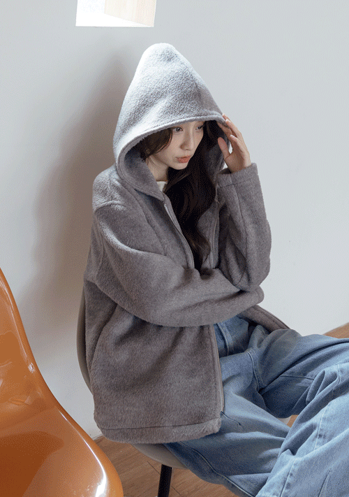 正韓 捲捲毛雙拉鍊連帽外套
