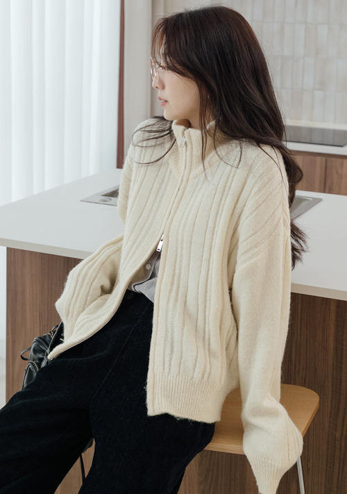 正韓 限量特價款 直坑條雙拉鍊羊毛外套