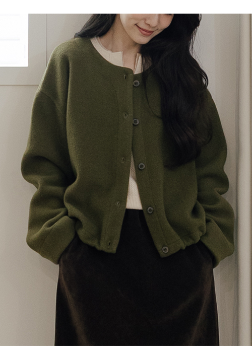 正韓 獨特草綠無領羊毛外套