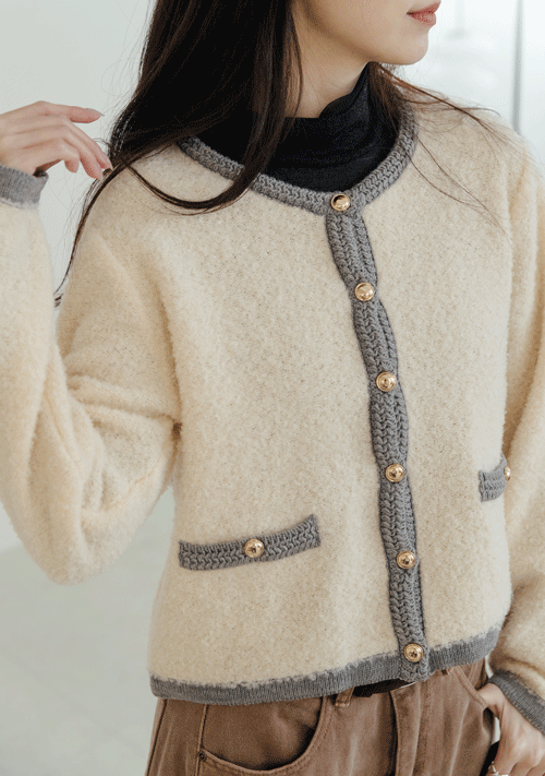 正韓 滾邊捲捲毛小香毛衣外套