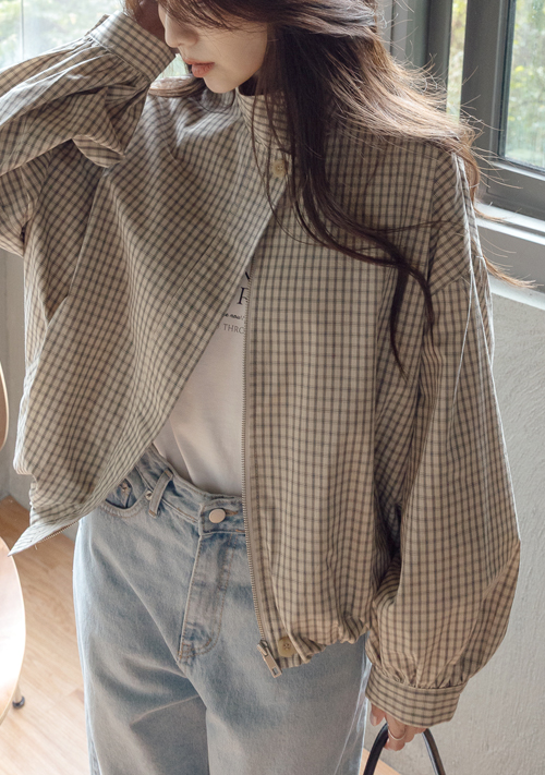 正韓 小文青細格立領外套