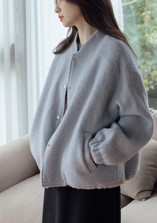 正韓 淺灰藍羊毛內鋪棉棒球外套