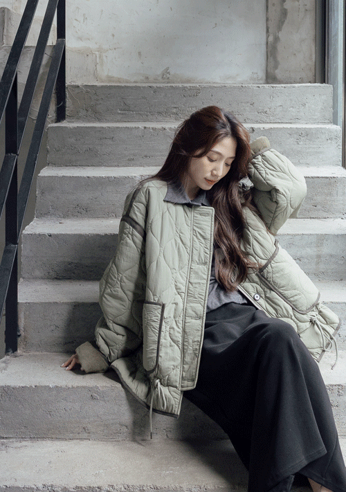 正韓 日系設計感圓圈壓紋下抽繩鋪棉外套