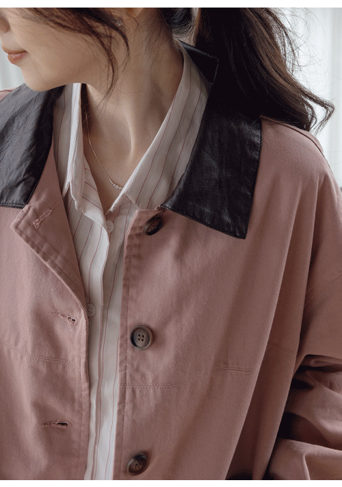 正韓 皮質領卡其棉外套