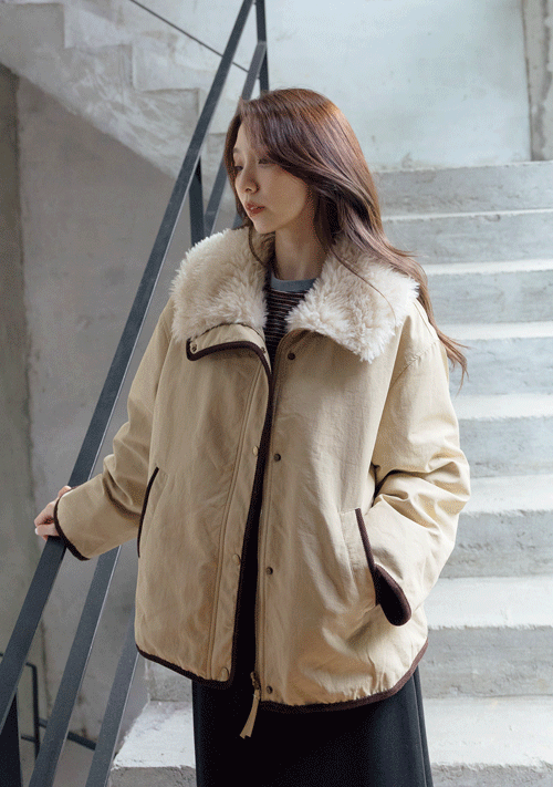 正韓 毛毛領絨布滾邊鴨絨外套