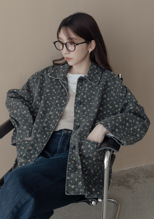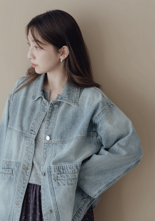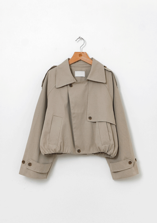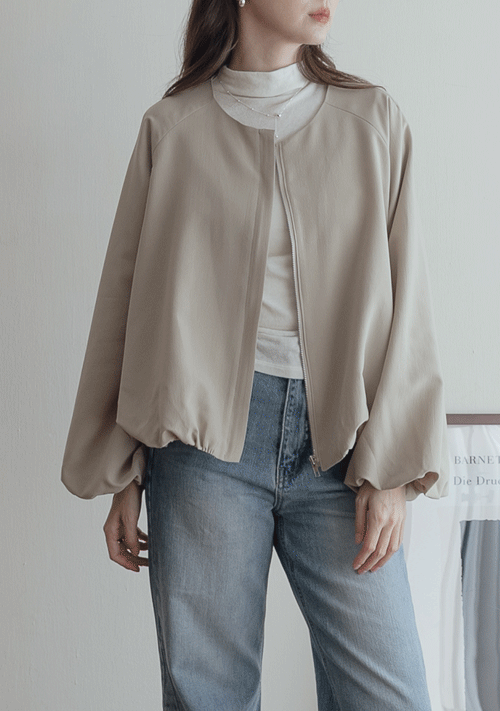正韓 設計感荷葉腰澎袖無領牛仔外套