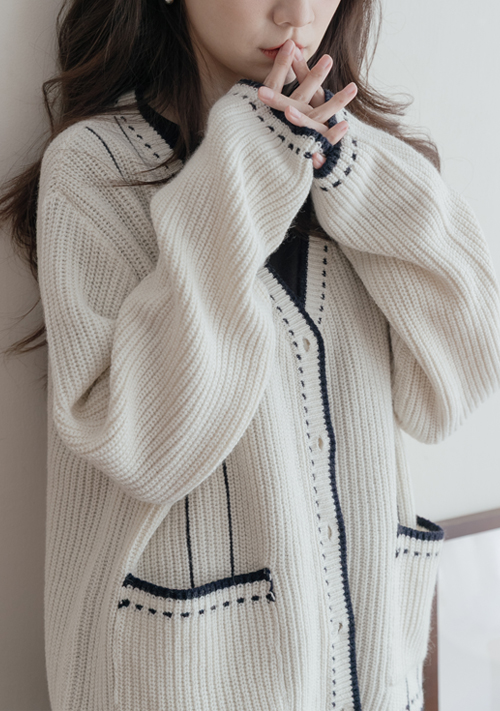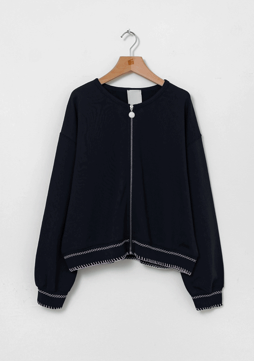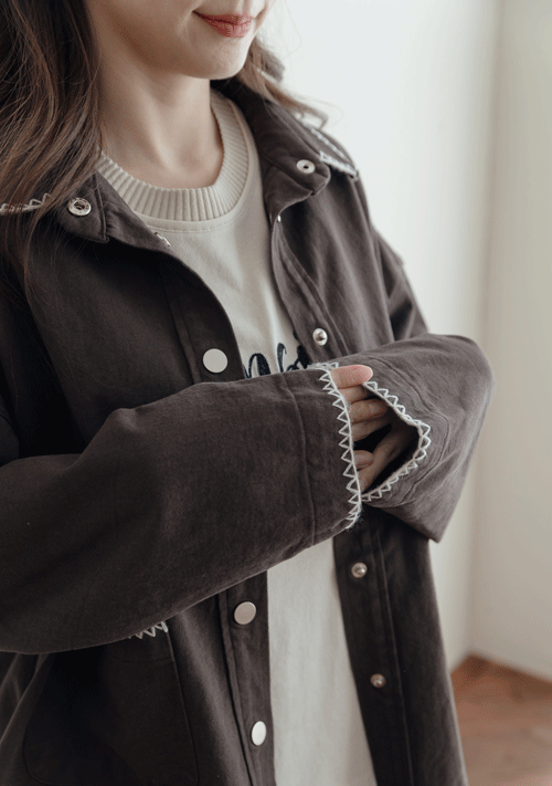 正韓 可愛瘋刺繡滾邊毛線釦拉鍊外套