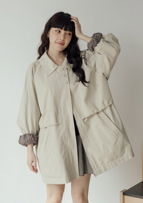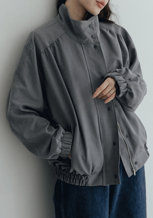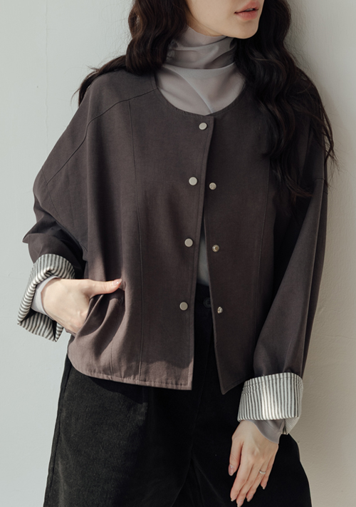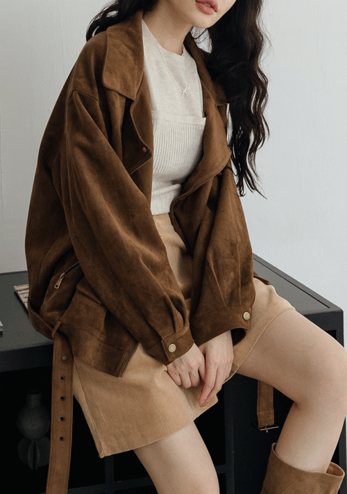 正韓 優雅率性立領翻釦蜜絨感騎士外套