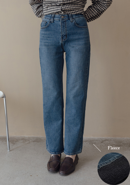 正韓 簡約內刷棉牛仔直筒褲