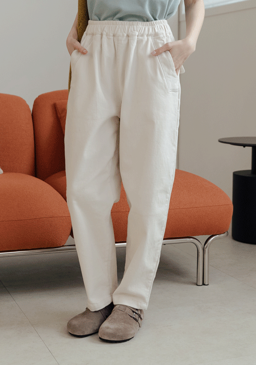 正韓 修飾雙釦腰單寧頭棉絨感休閒褲