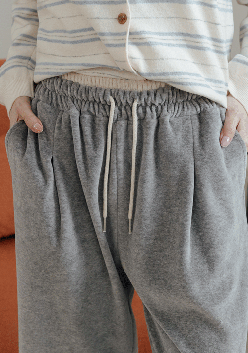 正韓 米白棉絨寬褲