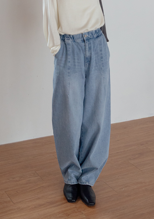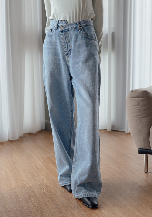 正韓 交叉腰頭低腰牛仔寬褲