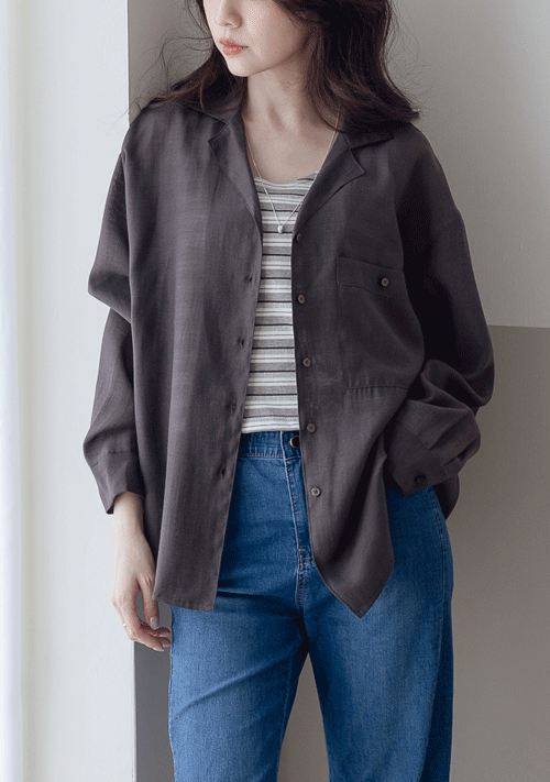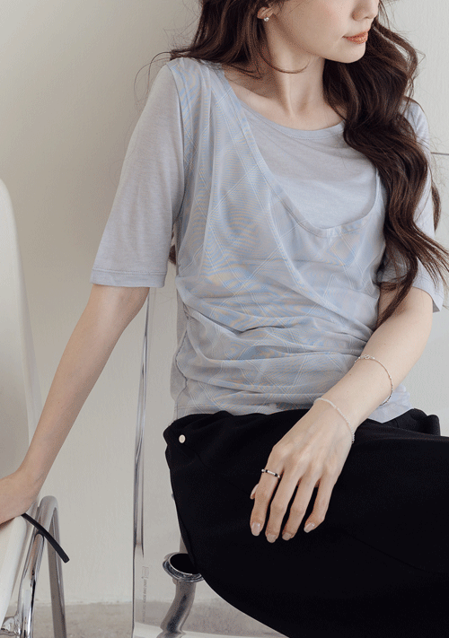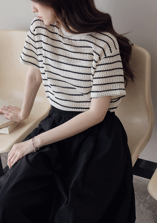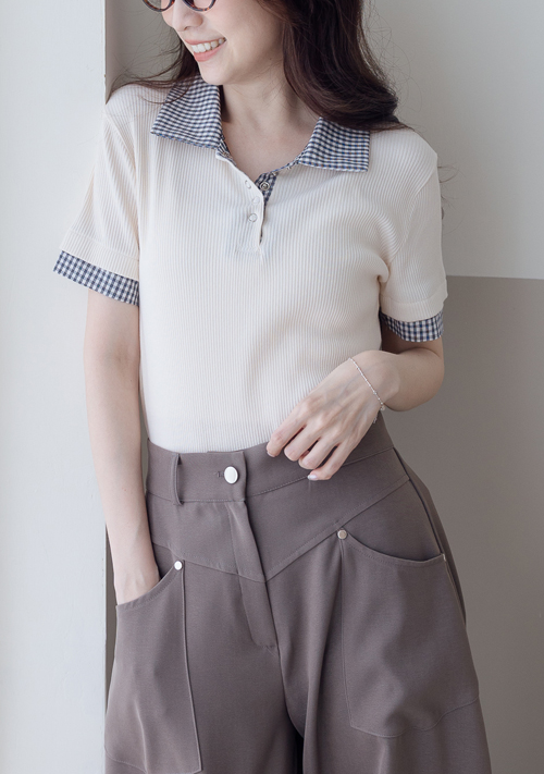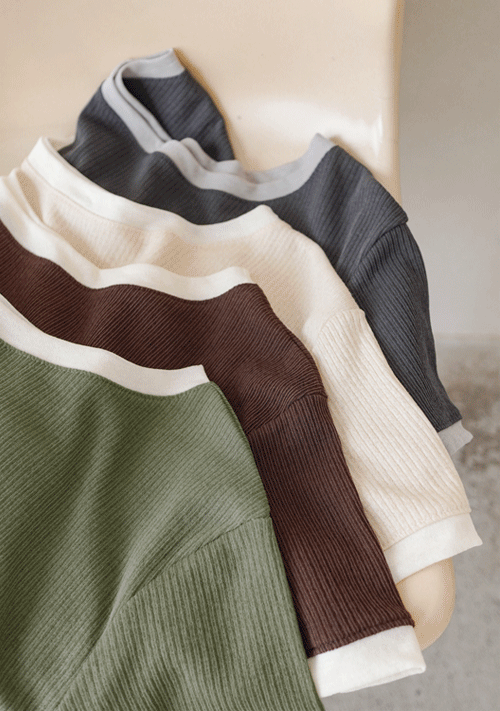 正韓 夾心餅乾滾邊寬圓領薄棉衫