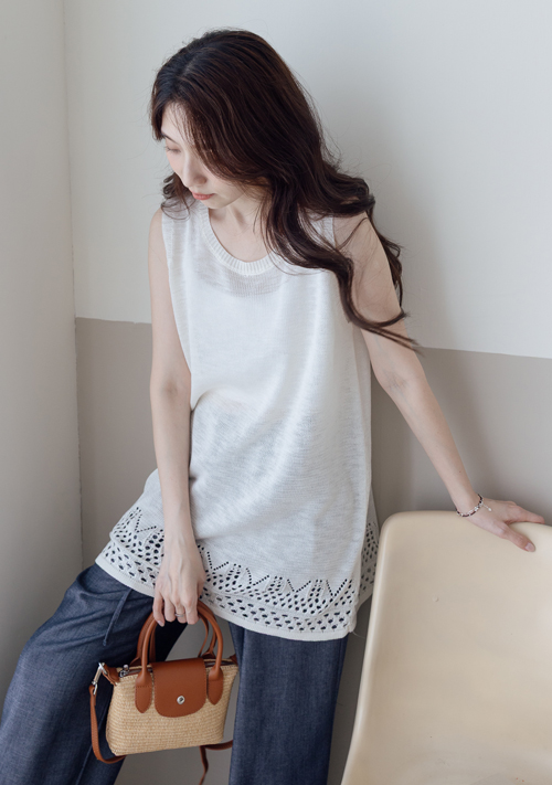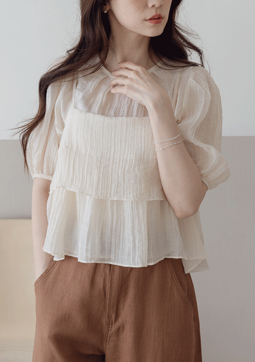 正韓 雙層拼接後釦背心+壓紋澎袖衫
