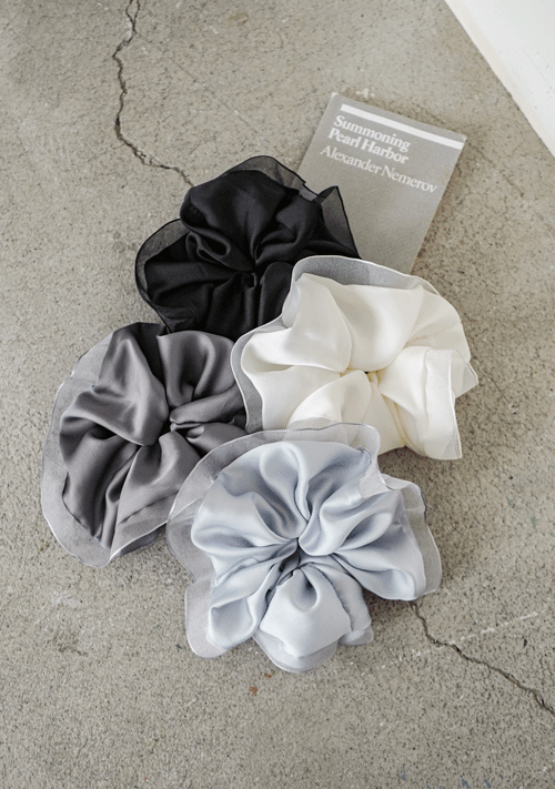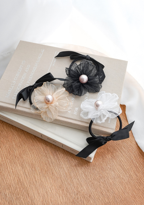 正韓 花朵紗珍珠蝴蝶結髮圈