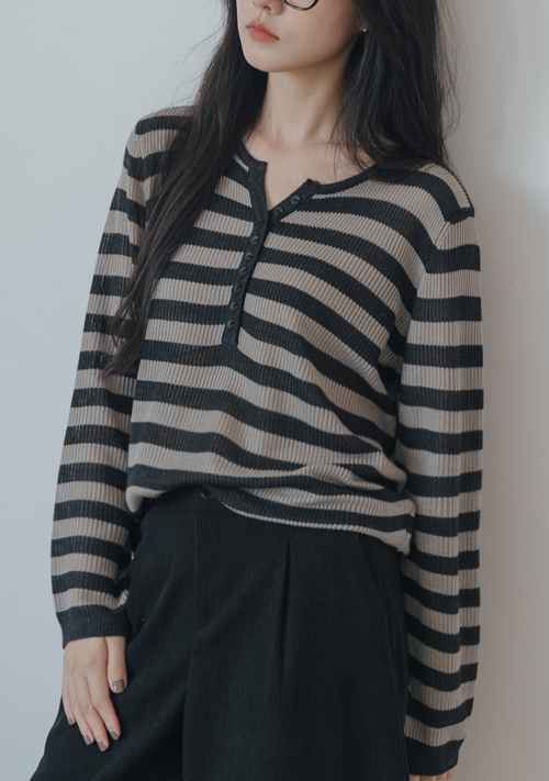 正韓 小率性雙線直條紋挺版磨棉襯杉
