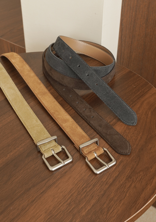 正韓 銀色方頭麂皮義大利真皮皮帶