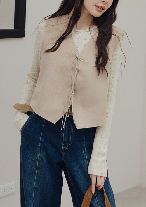正韓 波希米亞綁結捲捲毛麂皮背心