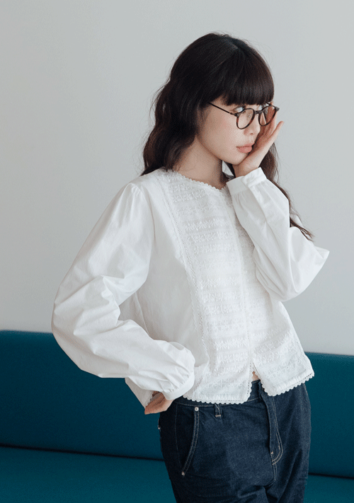 正韓 蕾絲滾邊袖彈性羅紋棉T